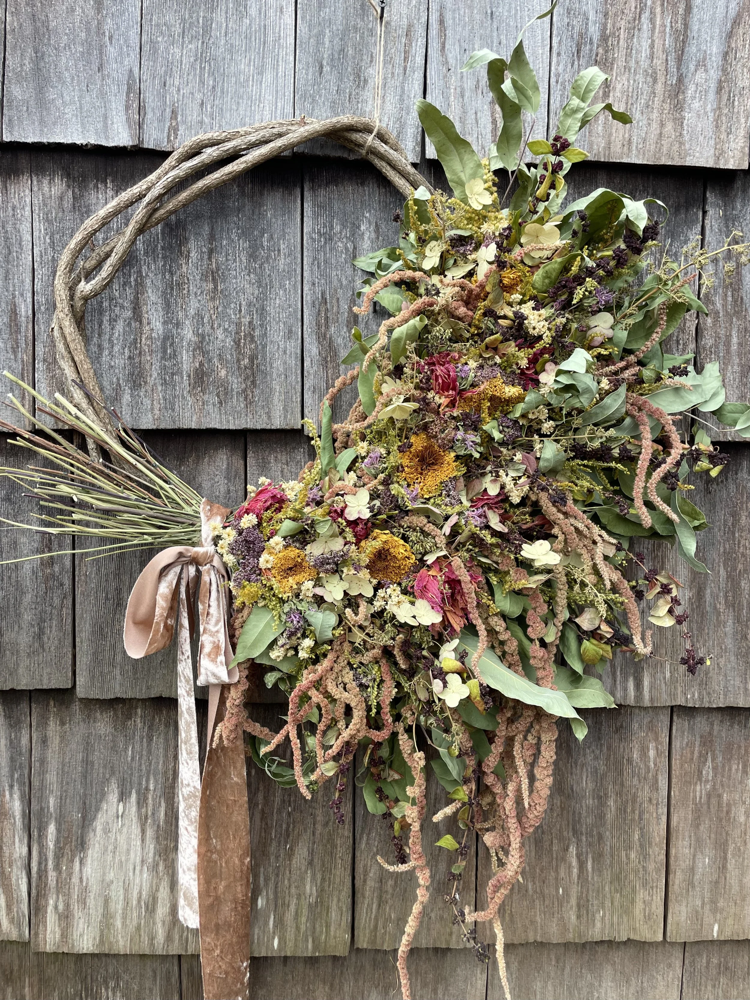 Using flowers and foliage we grow and gather, come wreaths and bunches that preserve the beauty of each season.